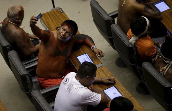 An immigrant is taking a test for being a citizen of a country, and he is taking a selfie of the test and himself. Everyone seems to be studying something on the tablets in-front of them. Also, the people seem to be at desk ("What's Going on in this Picture?", The Learning Network). Since there are a bunch of people, and they all look like they are studying something, they must be taking a test(or studying for a test. Everyone seems to be Hispanic, I believe they must be taking some sort of test to become an official American.